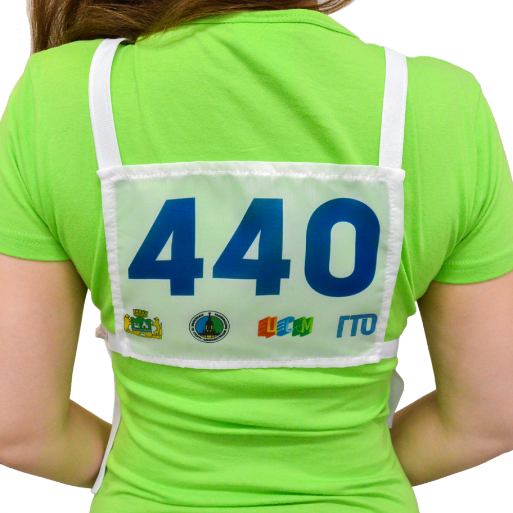 Прямоугольная форма номеров обеспечивает хорошую видимость и четкость идентификации. Завязки позволяют легко и быстро одевать и снимать номер, что особенно важно во время спортивных соревнований.