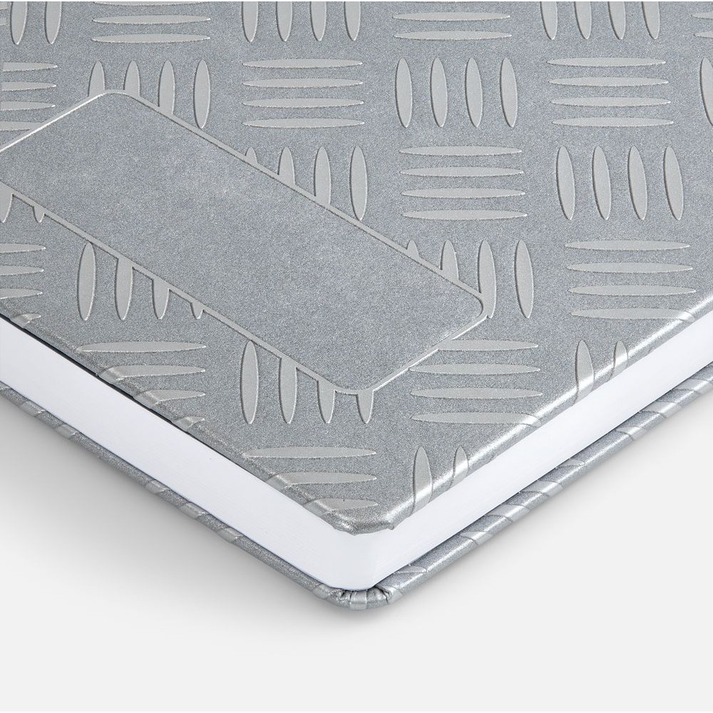 Ежедневник с твердой обложкой, выполнен из материала Waltz, серебро.