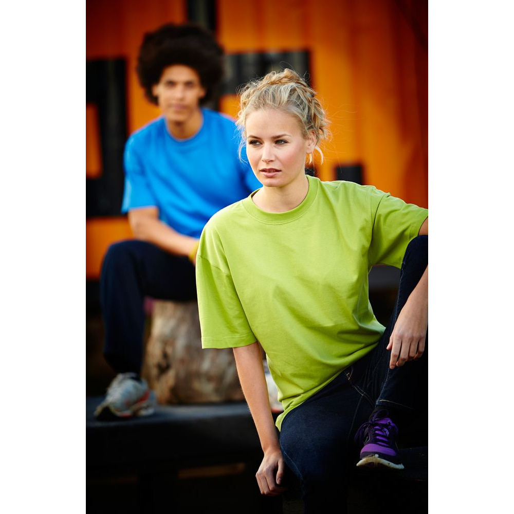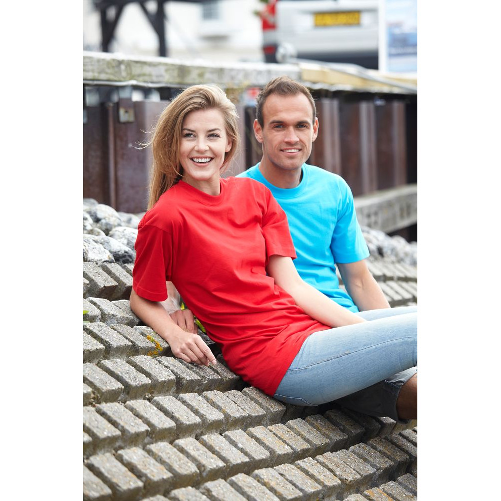 Мужская футболка с уплотненными швами на плечах и двойным швом с эластаном. Четырехслойная резинка на воротнике предохраняет его от растяжения.