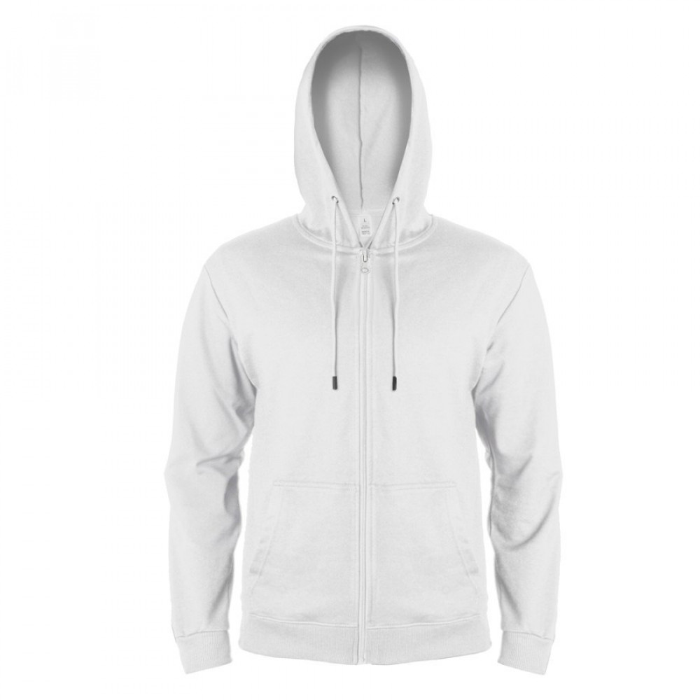 Параметры: Толстовка мужская на молнии с капюшоном EVEREST, белый, S, 50 % хлопок, 50% полиэстер, 260 г/м2
