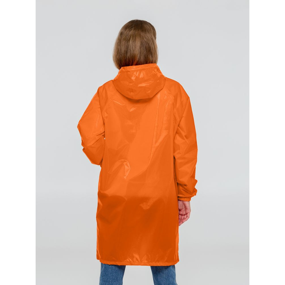 Плащ–дождевик на молнии с капюшоном и рукавами реглан. Ветрозащитные манжеты на рукавах.