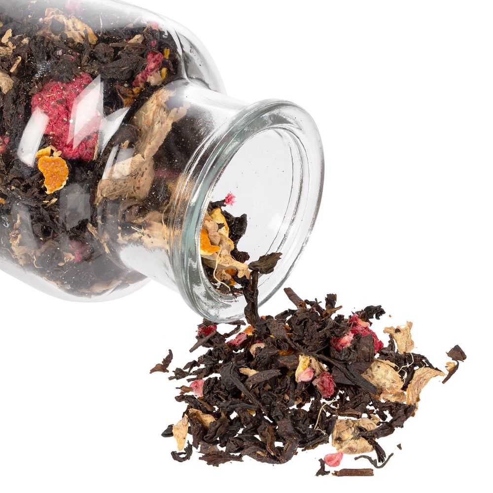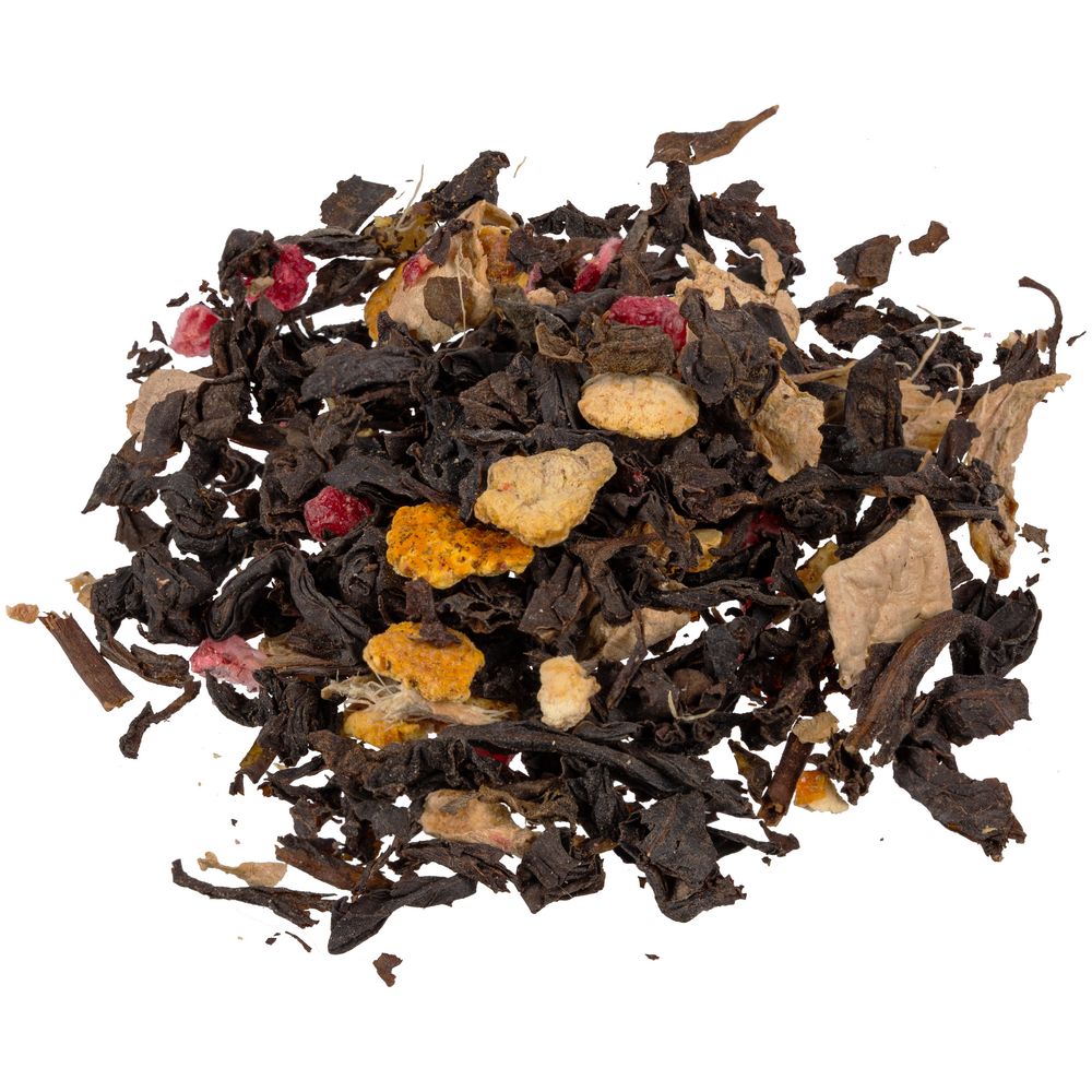 Черный крупнолистовой чай с апельсиновой цедрой, кусочками имбиря и сублимированной малиной обладает многогранной палитрой вкуса и аромата. В состав чая входят только натуральные ингредиенты, а чайные листья предварительно вымачиваются в имбирном соке: вкус напитка становится особо насыщенным и обогащенным.