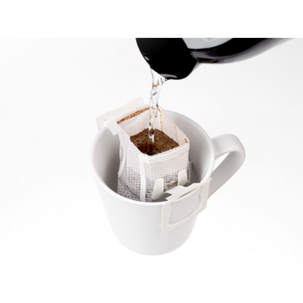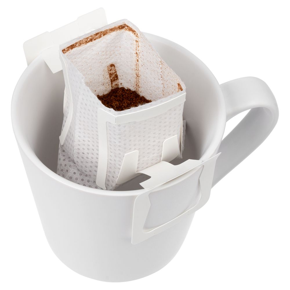 Дрип-пакет — легкий способ альтернативного заваривания натурального кофе прямо в чашке. Вам потребуются только любимая кружка и горячая вода: вскройте фильтр-пакет по линии отрыва, разместите его на чашке и медленно пролейте 150-200 мл воды через молотый кофе. Если хотите получить напиток покрепче — оставьте дрип в кружке на 2-3 минуты.
