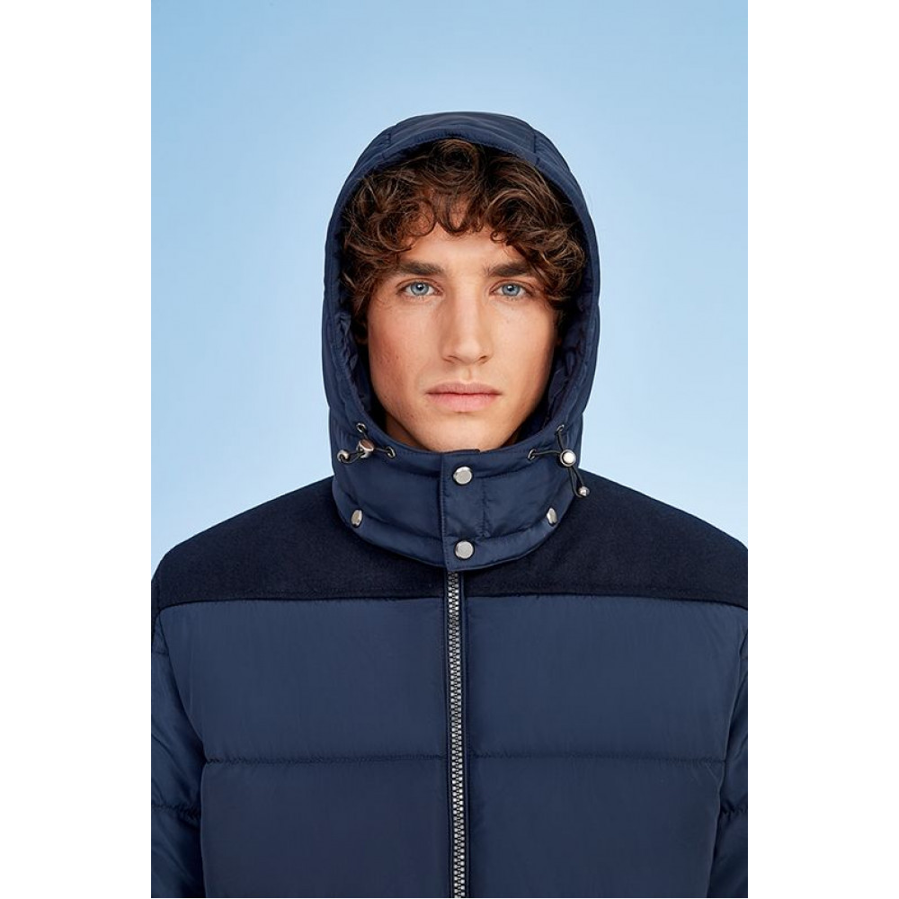 Мужская утепленная куртка на молнии с отстегивающимся капюшоном.