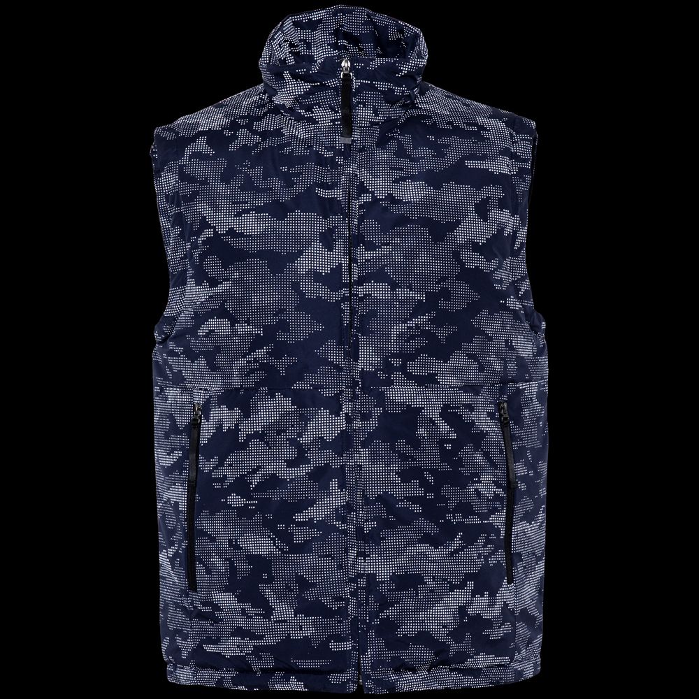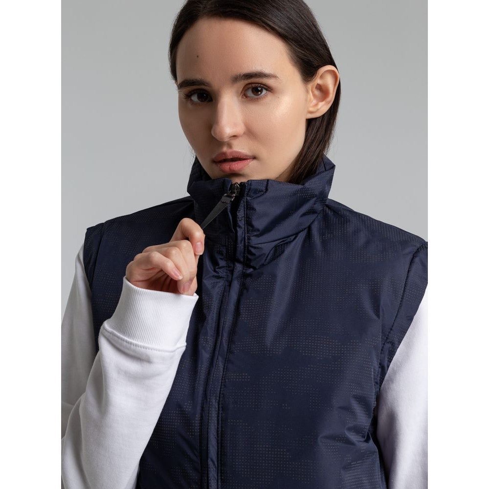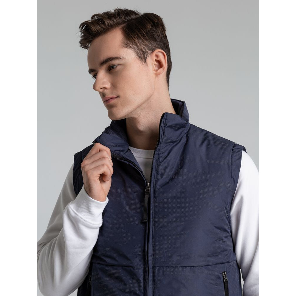Жилет с воротником-стойкой и светоотражающим рисунком.