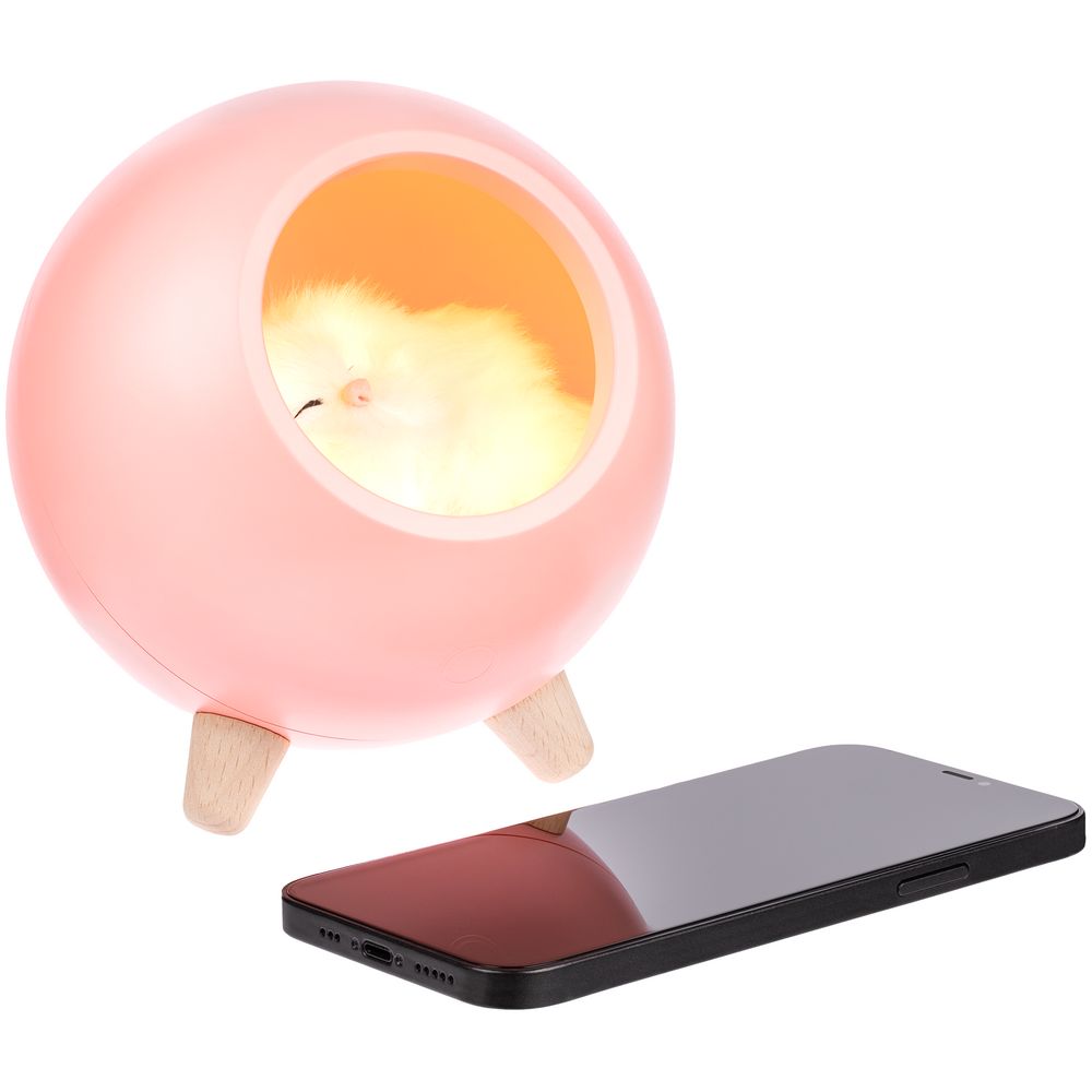 Беспроводная лампа-колонка Right Meow, розовая