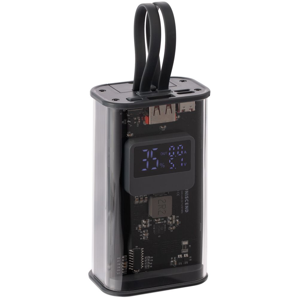 Необычный дизайн коллекции Uniscend Trellis выгодно выделяет новую серию устройств из прозаичного ряда внешних аккумуляторов. Они не поддерживают беспроводную зарядку, зато точно привлекают внимание: под прозрачной панелью хорошо видна электронная начинка. Цифровой индикатор показывает оставшийся в аккумуляторе заряд, а также отображает показатели зарядного процесса Quick Charge в вольтах и амперах.