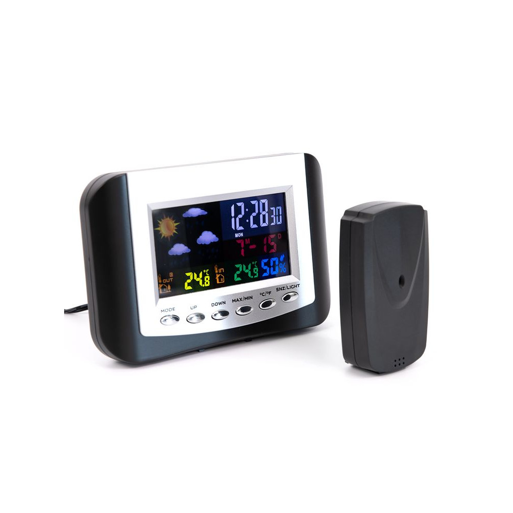 Метеостанция с цветным дисплеем и выносным датчиком точно покажет погоду в доме и за окном.